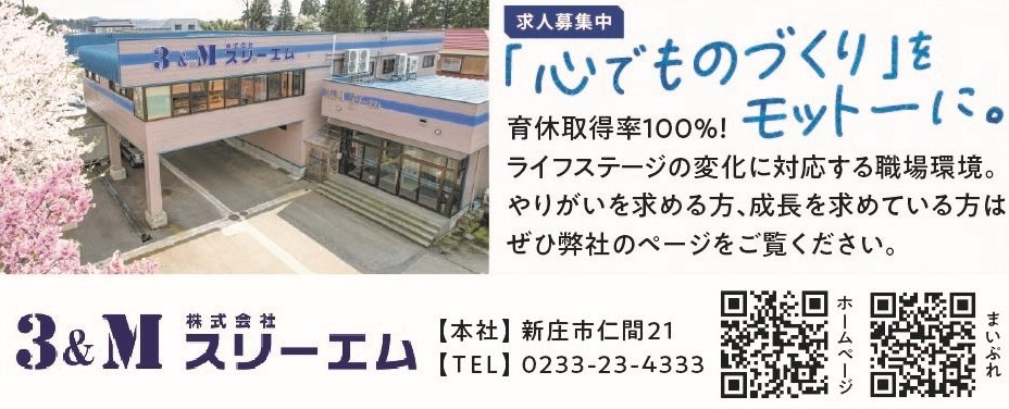 株式会社スリーエムは、「信(心)用」「信(心)頼」「信(心)実」をモットーに、より良い商品を心を込めて作り、消費者の皆様方に喜んでいただく商品をご提供したいと考えております。地域への貢献と、山形県新庄市から世界に発信する企業を目指します。